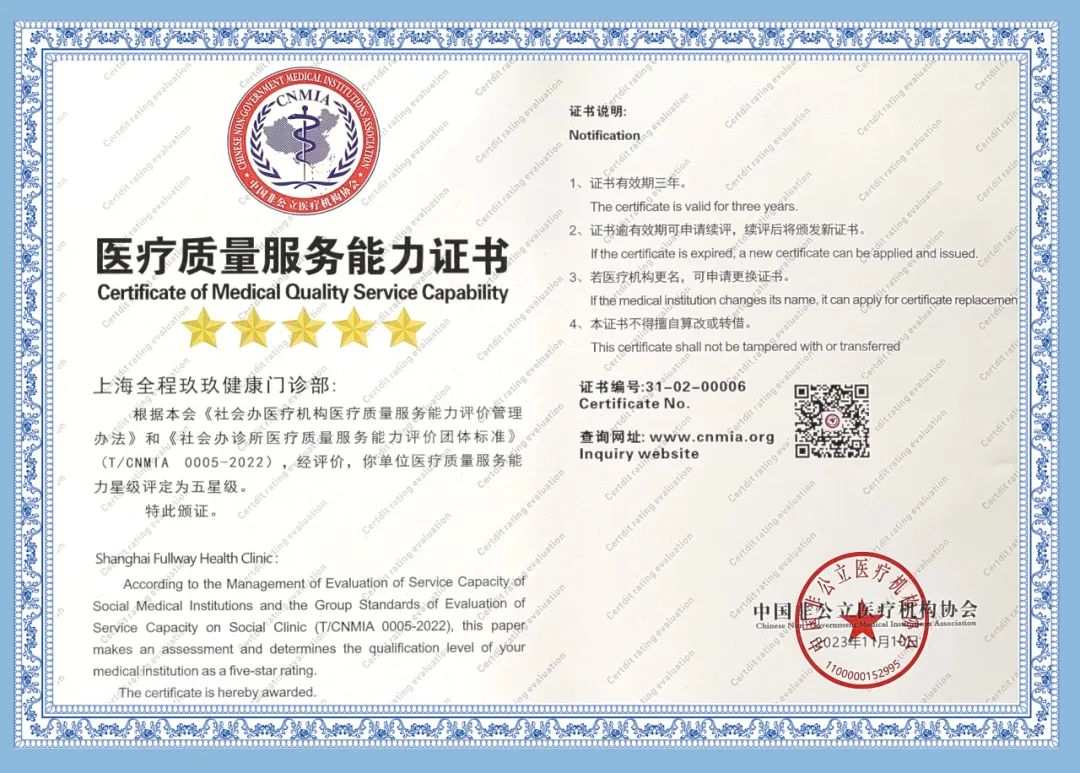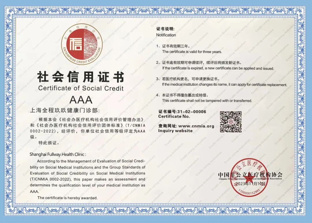 近期,上海鵬欣集團(tuán)旗下上海全程玖玖健康門診部接受了中國非公醫(yī)療機(jī)構(gòu)協(xié)會(huì)評(píng)價(jià)專家組的信用與能力的續(xù)評(píng)考核,收獲了一致認(rèn)可!喜獲中國非公立醫(yī)療機(jī)構(gòu)協(xié)會(huì)“社會(huì)信用評(píng)價(jià)AAA級(jí)機(jī)構(gòu)”及“醫(yī)療質(zhì)量服務(wù)能力五星級(jí)醫(yī)療機(jī)構(gòu)”兩項(xiàng)殊榮!